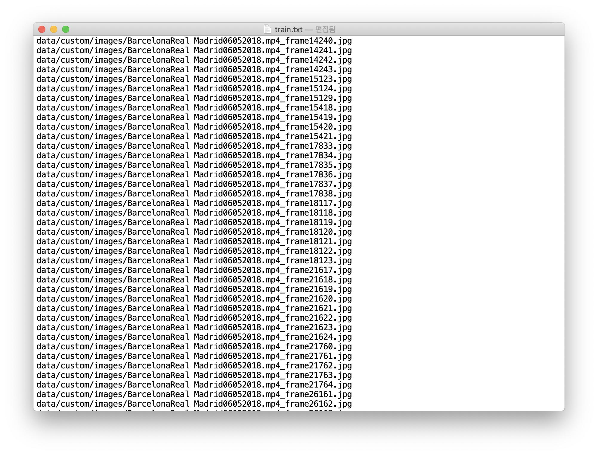 5) Training set과 Validation set 명시(data/custom/train.txt , data/custom/valid.txt)